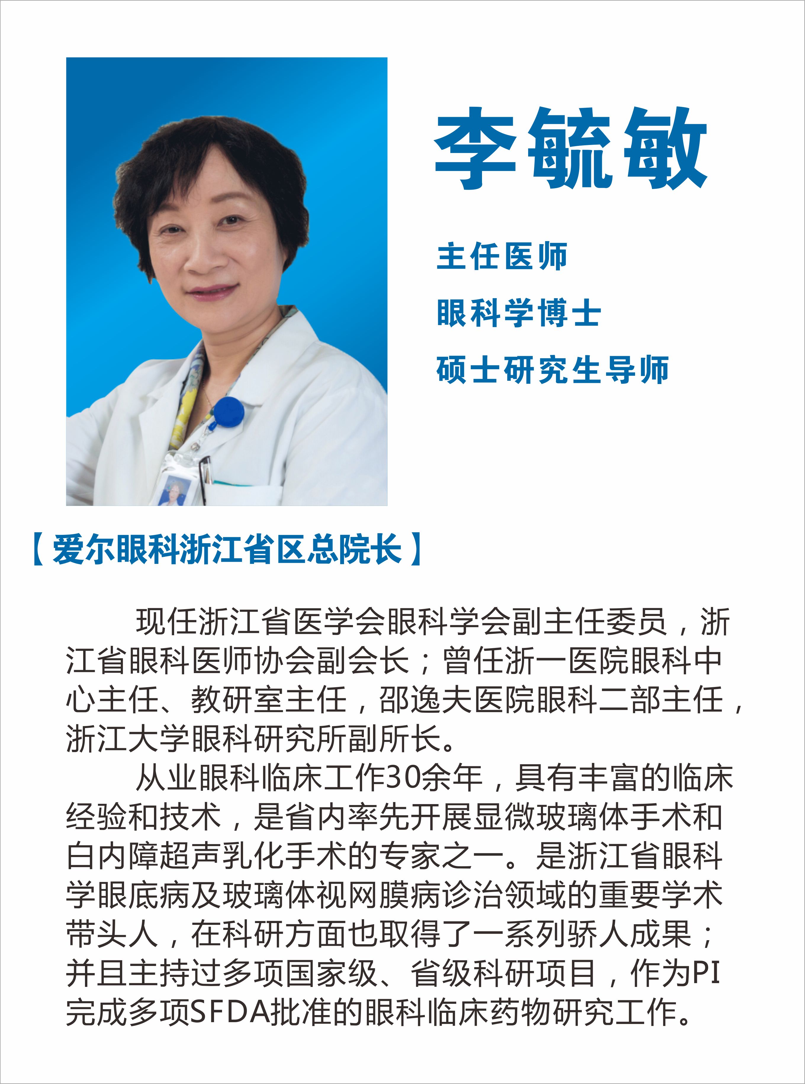 愛爾眼科浙江省區(qū)總院長,眼科學(xué)博士 ,碩士研究生導(dǎo)師,曾任浙一醫(yī)院眼科中心主任/浙江大學(xué)眼科研究所副所長,擅長白內(nèi)障/眼底病等老年性眼病。是浙江省眼底病診治領(lǐng)域的重要學(xué)術(shù)帶頭人